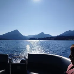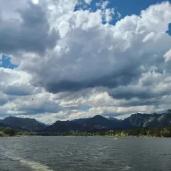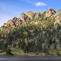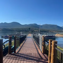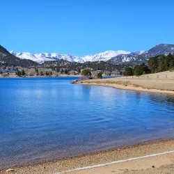 Lake Estes Marina offers boat rentals, fishing, and scenic views of the lake and surrounding mountains.
