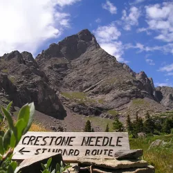 A challenging hiking trail leading to the summit of Crestone Needle, one of Colorado's famous fourteeners.