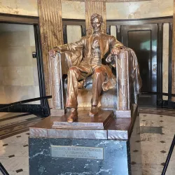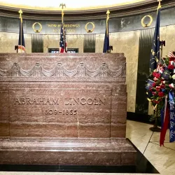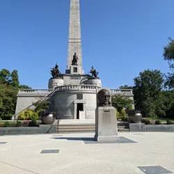The final resting place of Abraham Lincoln, his wife Mary Todd Lincoln, and three of their children. The tomb is a solemn and historically significant site, surrounded by a well-maintained park area.