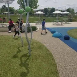 The park also features walking paths and open green spaces for picnics and casual outdoor activities.
