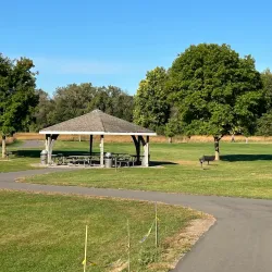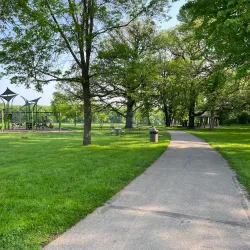 A smaller neighborhood park featuring playground equipment, walking paths, and picnic areas.