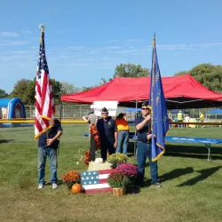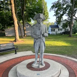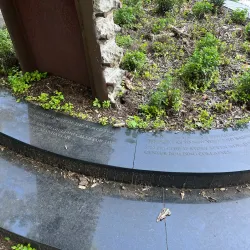 A small, serene park dedicated to honoring local veterans and community members.