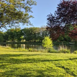 The park also features a pond and playgrounds, making it a family-friendly destination for relaxation and recreation.