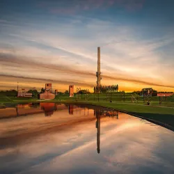 It features memorials, green spaces, and facilities for public events.