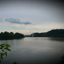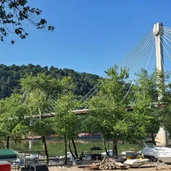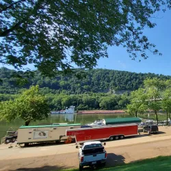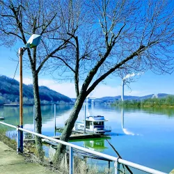 The ferry landing area along the Ohio River offers picturesque views and access to river activities. It is a historic point for river transportation and local commerce.