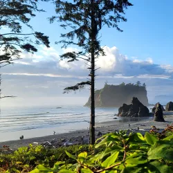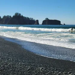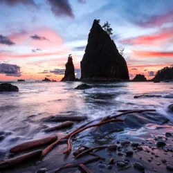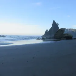 Rialto Beach is a scenic coastal area known for its dramatic sea stacks, tide pools, and driftwood-strewn shorelines. It is a favorite spot for beachcombing, photography, and watching sunsets over the Pacific Ocean.