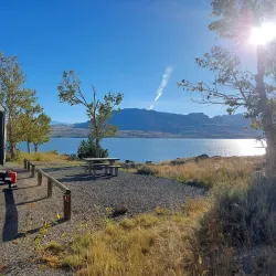 A scenic state park offering opportunities for camping, fishing, boating, and hiking along the shores of the Buffalo Bill Reservoir.