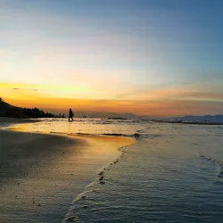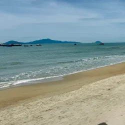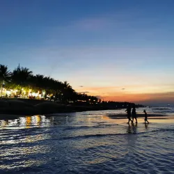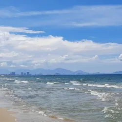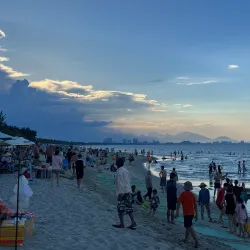 The beach is perfect for swimming, surfing, and enjoying sunset views over the South China Sea.