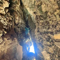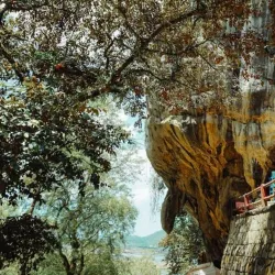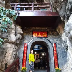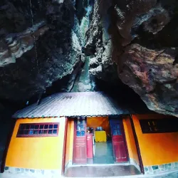 Visitors can climb steps to the cave entrance and explore the spiritual and natural beauty of the site.